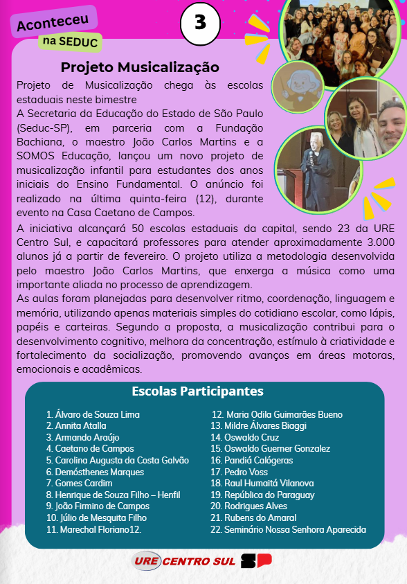 Unidade Regional de Ensino Centro Sul<<>> Componente de Duas Colunas ACOMPANHE AS NOVIDADES Novo! Urgente! CREDENCIAMENTO EMERGENCIAL PEI – Exclusivo para docentes das áreas de Classe, Linguagens, Matemática e Ciências da Natureza Alocação PEI – Entrevistas – Última chamada de inscritos fase inicial – Confira! Edital nº 05/2026 - Processo Seletivo Coordenador de Gestão Pedagógica - Período 18/03 à 23/03/2026 Edital nº 05/2026 - Processo Seletivo Vice-Diretor - Período 18/03 a 23/03/2026 Edital nº 03/2026 - Processo para Afastamento Junto à Assistência Técnica da URE CTS - Período 12/03 à 20/03/2026 Atenção! Cadastro emergencial para contratação temporária de docentes Ensino Fundamental e Médio via Banco de Talentos Processo seletivo para preenchimento de vaga – Diretor de Escola/Diretor Escolar – EE Mário Casassanta – Classificação Final Resultado do Processo Seletivo para afastamento junto à Assistência Técnica da Unidade Regional de Ensino Centro Sul Classificação final – Processo Seletivo para Preenchimento de Vaga de Coordenador de Equipe Curricular na Unidade Regional de Ensino Centro Sul EDITAL nº 01/2026 – Edital para seleção de professores para atuação nas escolas olímpicas CONVIVA SP EDITAL DE INSCRIÇÃO PARA DOCENTE ARTICULADOR DA SALA DE LEITURA NAS ESCOLAS ESTADUAIS – TEMPO PARCIAL E PROGRAMA DE ENSINO INTEGRAL (PEI) RECADASTRAMENTO SOUGOV RECADASTRAMENTO IAMSPE ORIENTAÇÕES SOBRE AVALIAÇÃO DE CAPACIDADE LABORAL ESTÁGIO SUPERVISIONADO PRESENCIAL Mural Mural SARESP 2025 Programa Meu Diploma QUERO INTEGRAL Planejamento PORTAIS E SISTEMAS